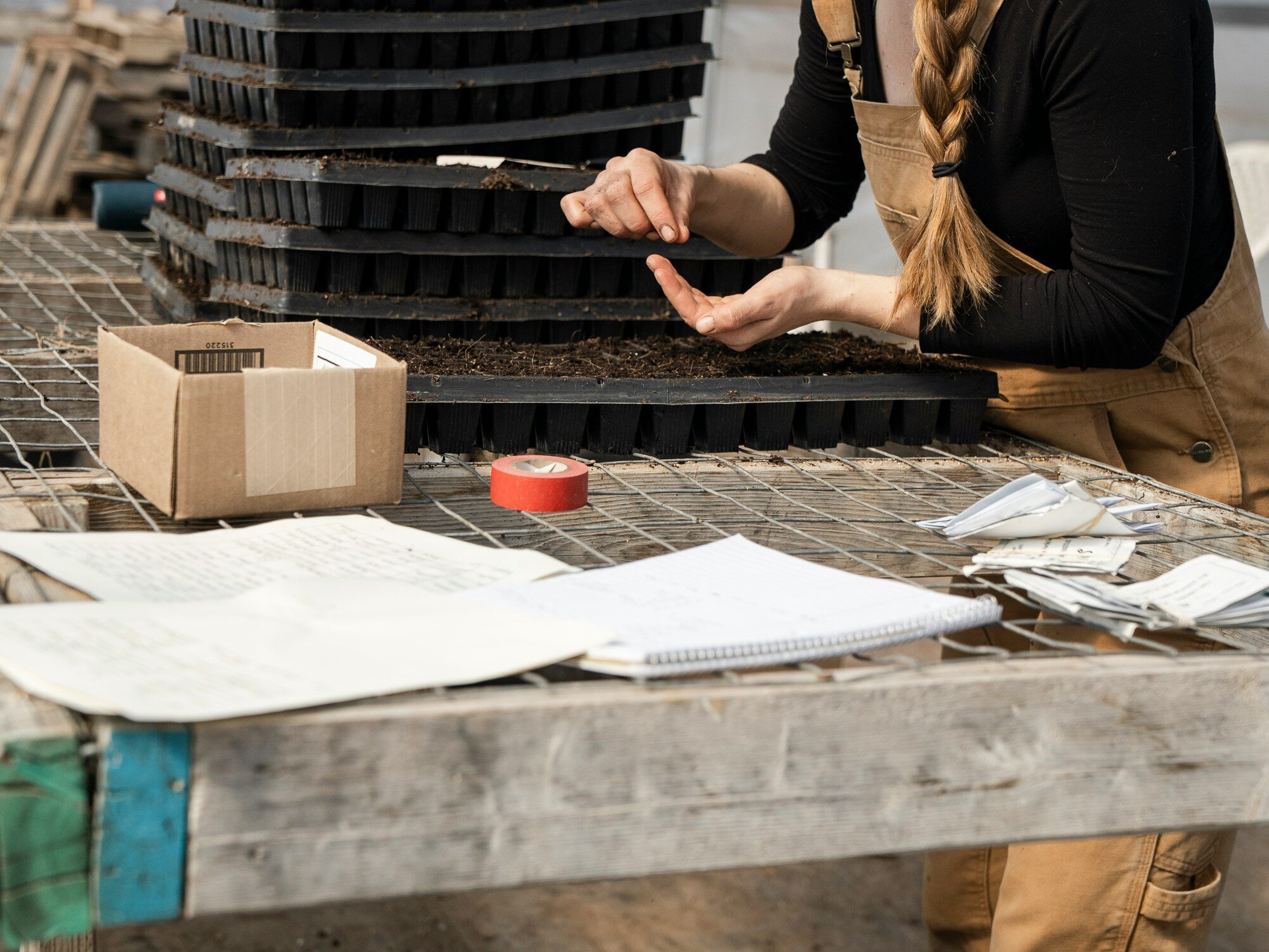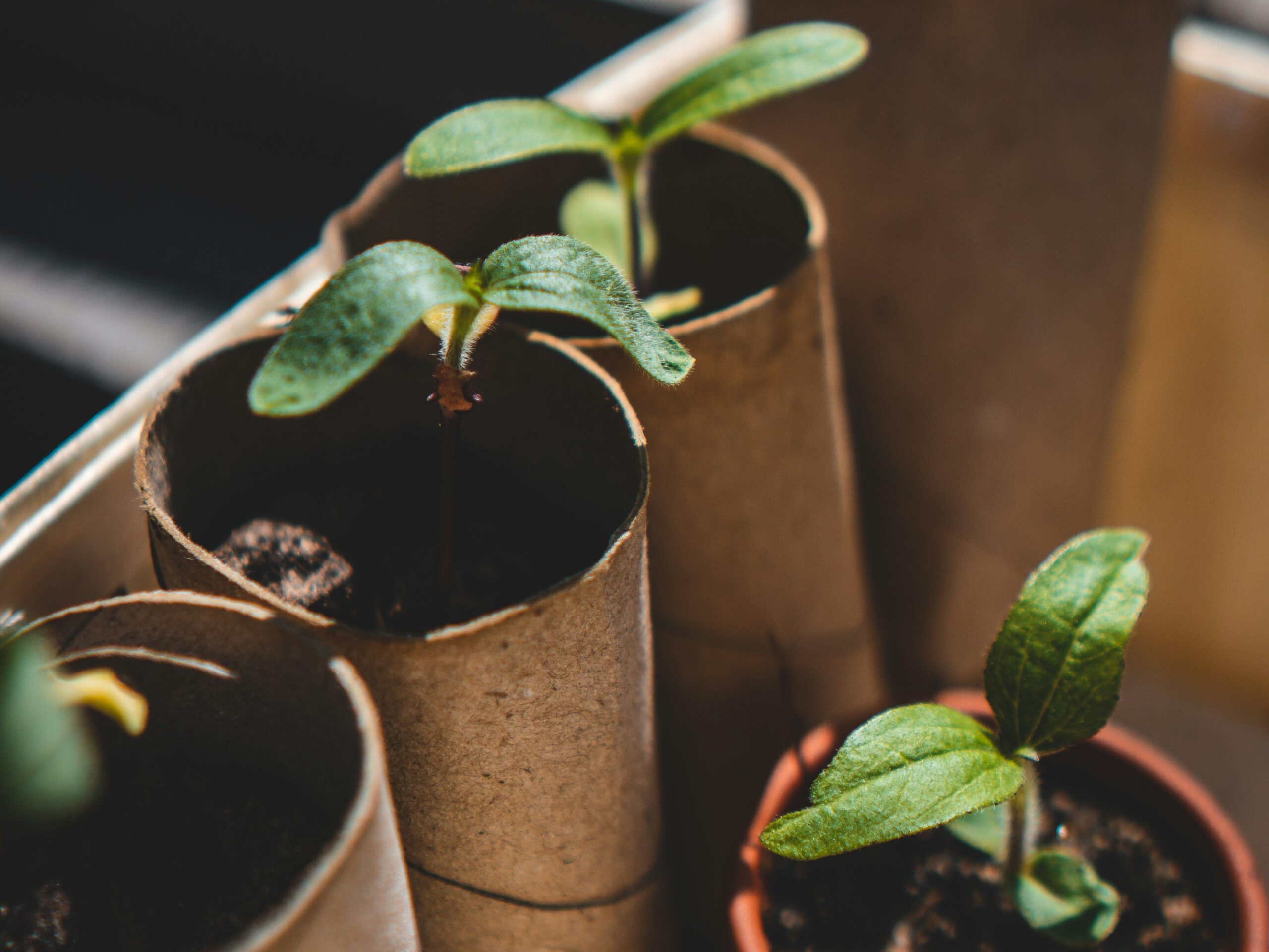 Small pots, seed trays, or even recycled containers (egg cartons, toilet paper rolls, or even scrap yarn work great)